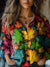 Colorful Summer Garden Art Printed Women's Casual Long Sleeve Comfortable Cotton Shirt