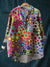 Multicolor Geometric Pattern Printed Women's Casual Long Sleeve Comfortable Cotton Shirt
