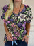 Watercolor Retro Floral Pattern Printed Women's Casual Linen V-Neck Shirt
