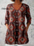 Women's Art Geometric Print V-Neck Cotton and Linen Top
