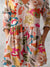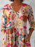 Women's Elegant Floral Print V-Neck Cotton and Linen Top