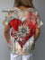 Women's Vintage Love Art Print Casual Cotton And Linen Shirt