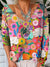 Colorful Summer Floral Garden Pattern Printed V-Neck Pullover Knit Top