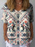 Watercolor Retro Floral Pattern Printed Women's Casual Linen V-Neck Shirt