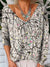 Watercolor Retro Floral Pattern Printed Women's Casual Linen V-Neck Shirt