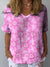 Lovely Pink Chrysanthemums Floral Pattern Printed Women's Casual Cotton And Linen Shirt