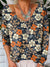 Watercolor Retro Floral Pattern Printed Women's Casual Linen V-Neck Shirt