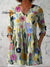 Watercolor Retro Floral Pattern Printed Women's Casual Linen V-Neck Shirt
