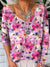 Pink Spring Pattern Printed V-Neck Pullover Knit Top