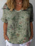 Watercolor Retro Floral Pattern Printed Women's Casual Linen V-Neck Shirt