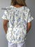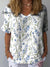 Watercolor Retro Floral Pattern Printed Women's Casual Linen V-Neck Shirt