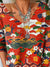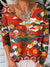 Traditional Japanese Floral Pattern Printed V-Neck Pullover Knit Top