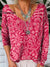 Vibrant Summer Floral Pattern Printed V-Neck Pullover Knit Top