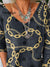 Vintage Gold Chain Pattern Printed V-Neck Pullover Knit Top