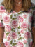 Vintage Pink Rose Pattern Printed Women's Casual Cotton And Linen Shirt