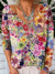 Watercolor Retro Floral Pattern Printed Women's Casual Linen V-Neck Shirt