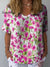 Women's Colorful Flower Art Print Casual Cotton And Linen Shirt