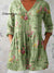 Women's Elegant Floral Pattern Round Neck Cotton and Linen Top