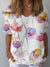 Women's Elegant Watercolor Floral Pattern Cotton And Linen Top
