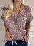 Watercolor Retro Floral Pattern Printed Women's Casual Linen V-Neck Shirt