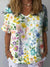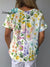 Watercolor Garden Floral Pattern Printed Women's Casual Linen V-Neck Shirt