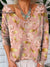 Watercolor Retro Floral Pattern Printed Women's Casual Linen V-Neck Shirt