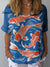 Women's Lucky Koi Art Print Casual Cotton And Linen Shirt