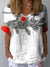 Watercolor Retro Floral Pattern Printed Women's Casual Linen V-Neck Shirt