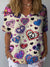 Women's Peace Love Art Print Casual Cotton And Linen Shirt