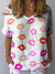 Women's Romantic Red Lip Art Print Casual Cotton And Linen Shirt