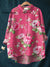 Women's Rose Floral Pattern Casual Cotton And Linen Shirt