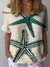 Women's Starfish Art Print Casual Cotton And Linen Shirt