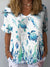 Watercolor Garden Floral Pattern Printed Women's Casual Linen V-Neck Shirt