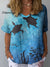 Women's Turtle Art Print Casual Cotton And Linen Shirt
