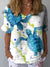 Watercolor Retro Floral Pattern Printed Women's Casual Linen V-Neck Shirt