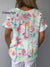 Watercolor Garden Floral Pattern Printed Women's Casual Linen V-Neck Shirt