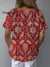 Watercolor Retro Floral Pattern Printed Women's Casual Linen V-Neck Shirt