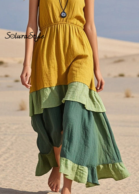 Boho Yellow Patchwork Cotton Cami Dresses Summer