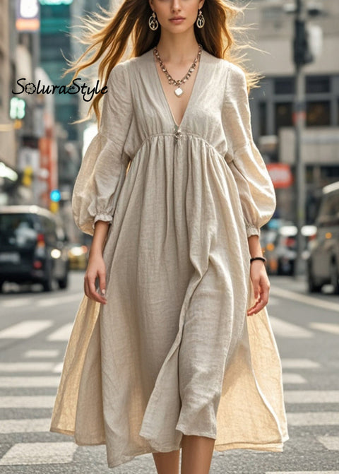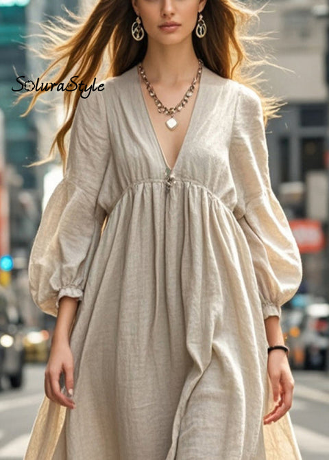 Elegant Beige Oversized Cotton Long Dresses Spring