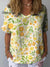 Ethnic Symmetrical Floral Pattern Printed Women's Casual Linen V-Neck Shirt