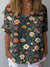 Ethnic Symmetrical Floral Pattern Printed Women's Casual Linen V-Neck Shirt