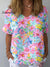 Women's Artistic Flower Pattern Cotton and Linen Short Sleeve Top