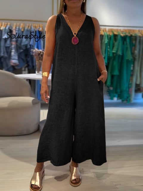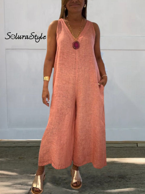 Women's Casual 100% Cotton Wide Leg Jumpsuit
