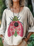 Women's Flower Bug Art Print Casual Cotton And Linen Shirt