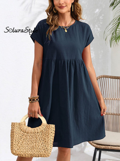 Women's Solid Color Casual Loose Elegant Cotton Dress